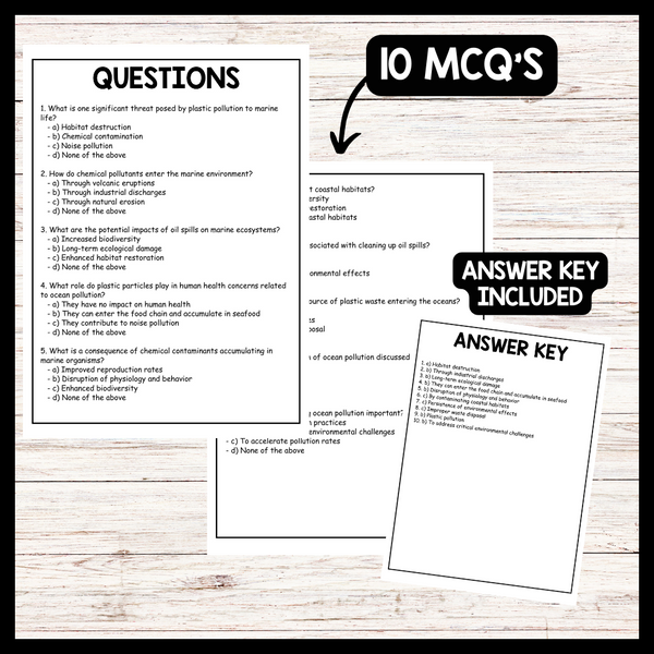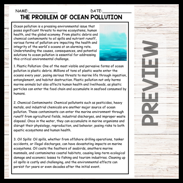 - "THE PROBLEM OF OCEAN POLLUTION" WORLD OCEAN DAY Reading Comprehension