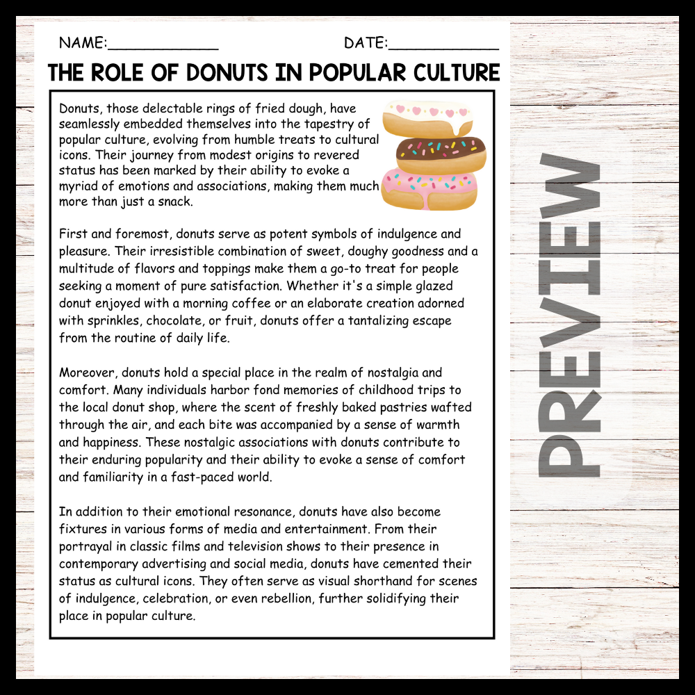 - "THE ROLE OF DONUTS IN POPULAR CULTURE" NATIONAL DONUT DAY Reading Comprehension