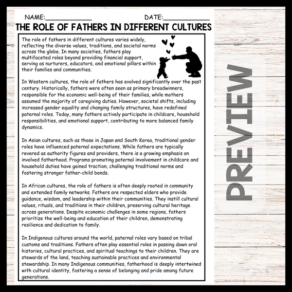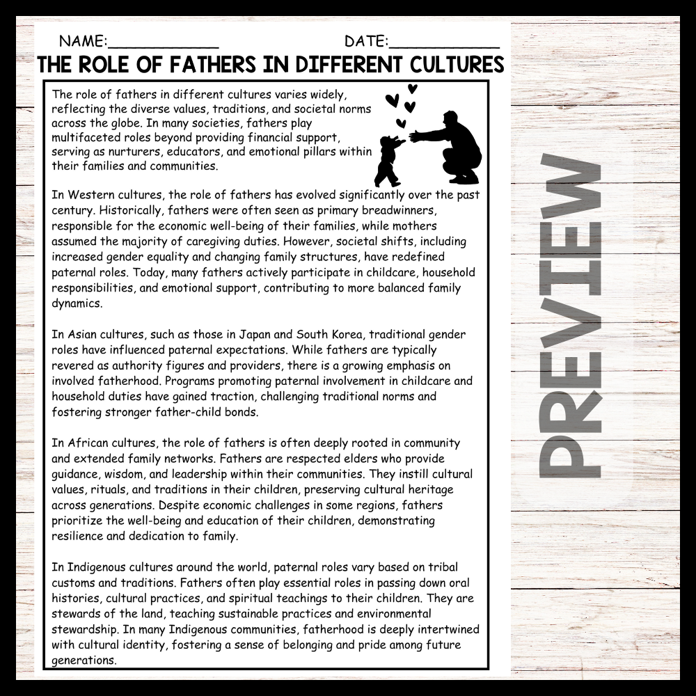- "THE ROLE OF FATHERS IN DIFFERENT CULTURES" FATHER'S DAY Reading Comprehension