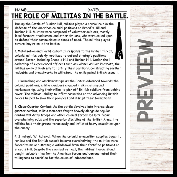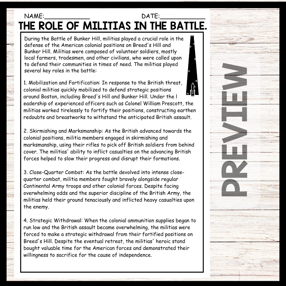 - "THE ROLE OF MILITIAS IN THE BATTLE." BUNKER HILL DAY Reading Comprehension
