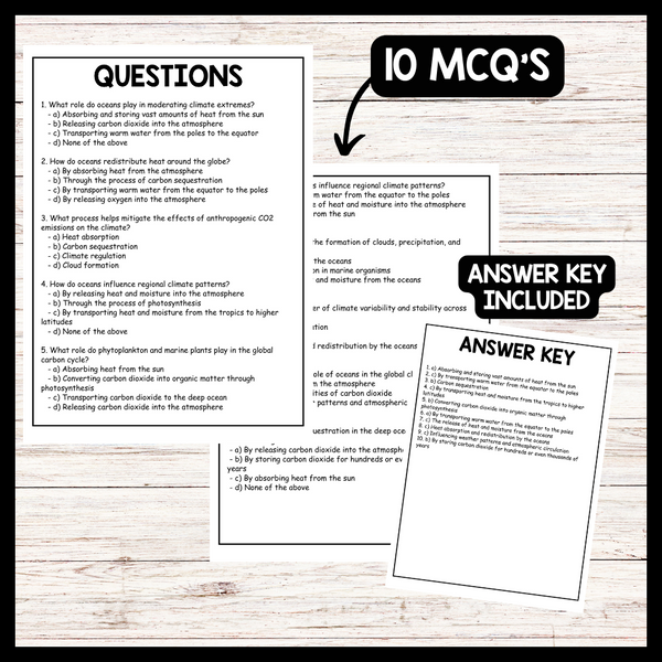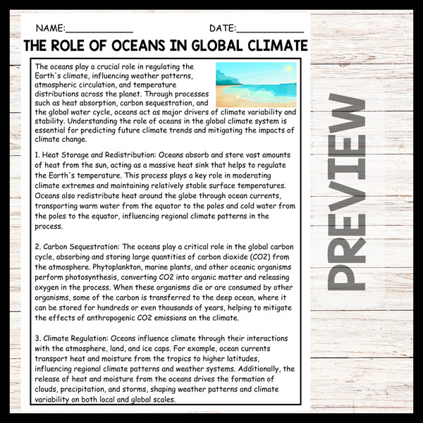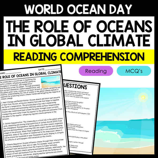 - "THE ROLE OF OCEANS IN GLOBAL CLIMATE" WORLD OCEAN DAY Reading Comprehension