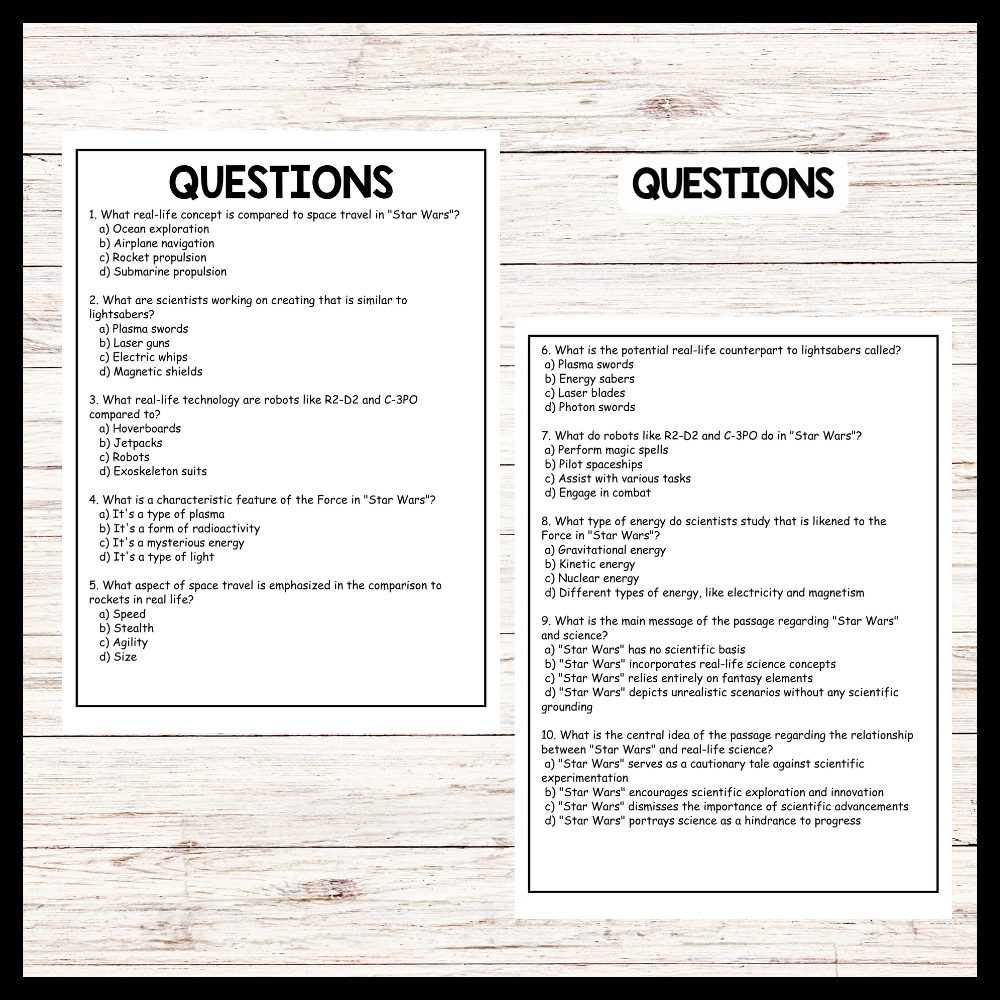 - "THE SCIENCE BEHIND STAR WARS" MAY THE FOURTH Reading Comprehension