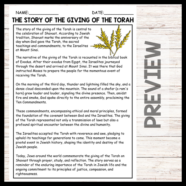 - "THE STORY OF THE GIVING OF THE TORAH" SHAVUOT Reading Comprehension