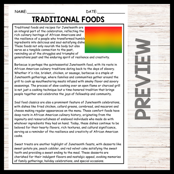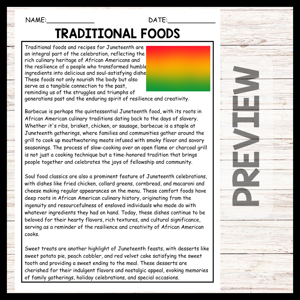 - "TRADITIONAL FOODS" JUNETEENTH Reading Comprehension