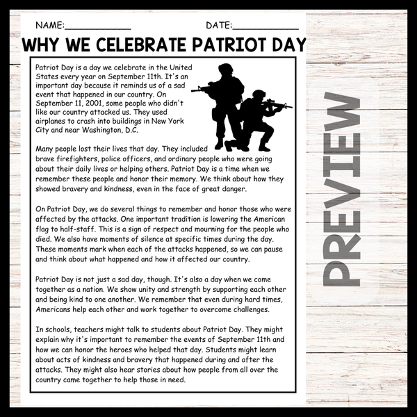 - Why We Celebrate Patriot Day Reading comprehension and Questions