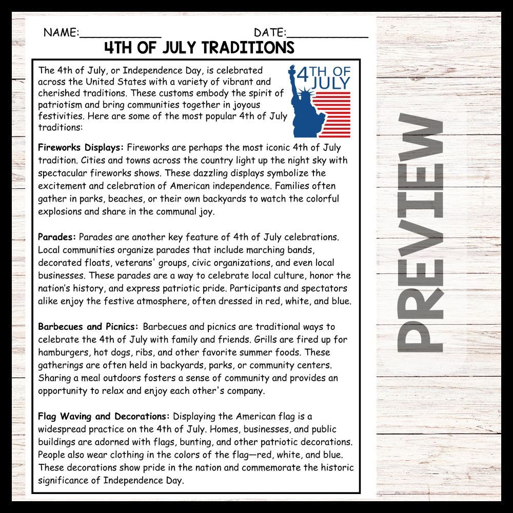 This passage helps teachers illustrate the excitement of 4th of July celebrations. For students, it enhances their understanding of this tradition and its role in symbolizing American independence and communal joy.