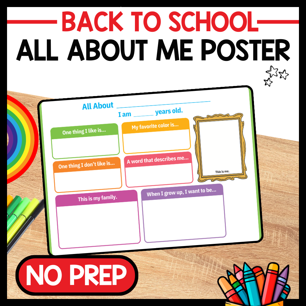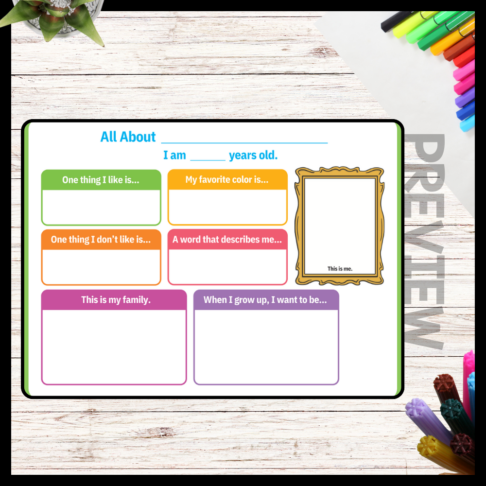 Are you searching for enjoyable activities to acquaint yourself with your students as you transition back to school? Consider integrating this printable All About Me Poster into your lesson plans. Available in both black and white and full color formats, you can select the version that best meets your teaching preferences.
