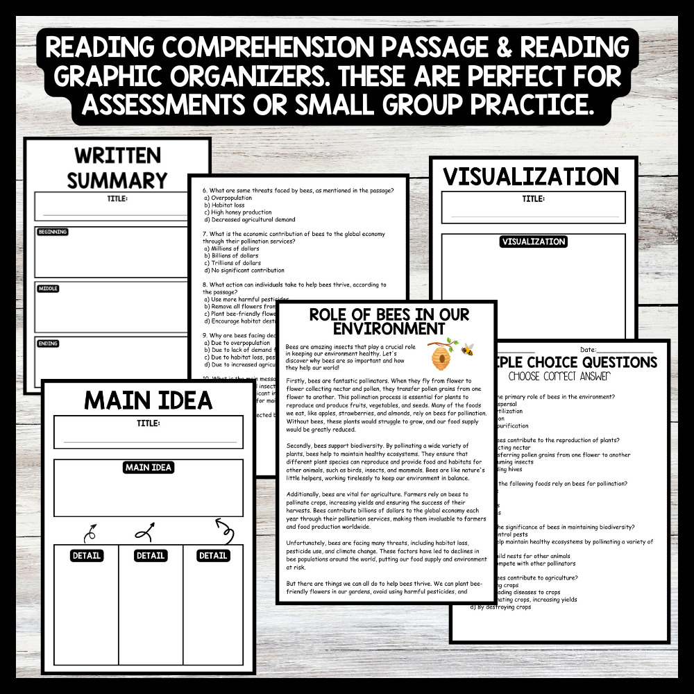Grow your students knowledge with this Nonfiction Reading Comprehension Passage - Bee Day - Bees in Our Environment These reading practice passages are perfect for: warm-up, bell work, homework, or weekly assessments. Students can use independently in literacy groups, guided...View more