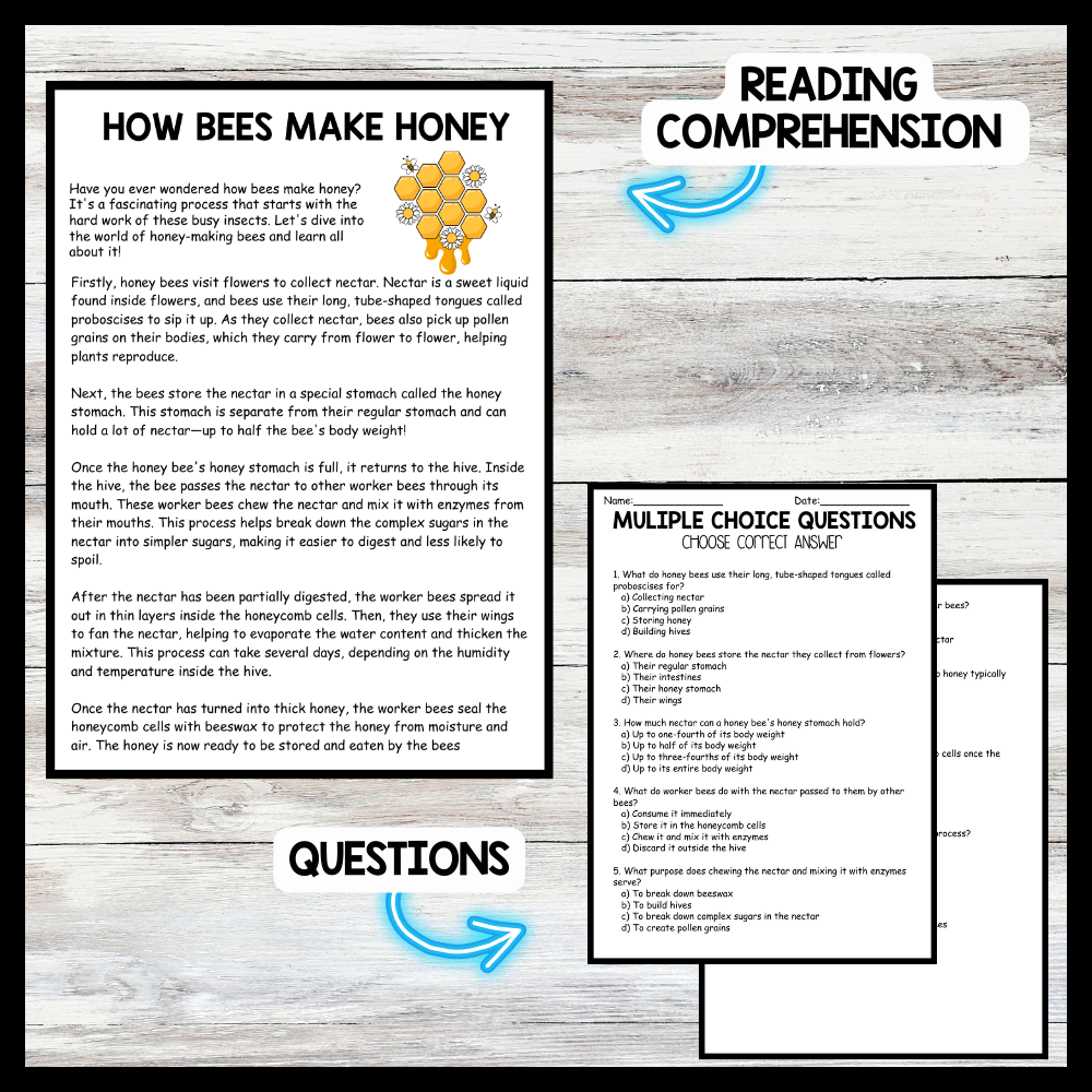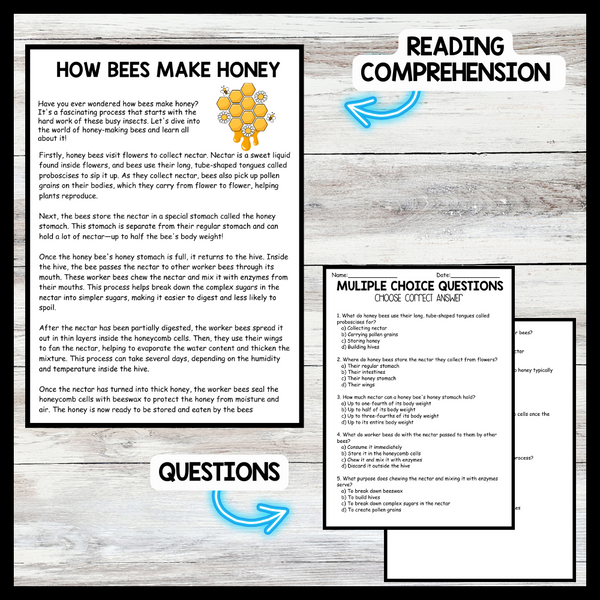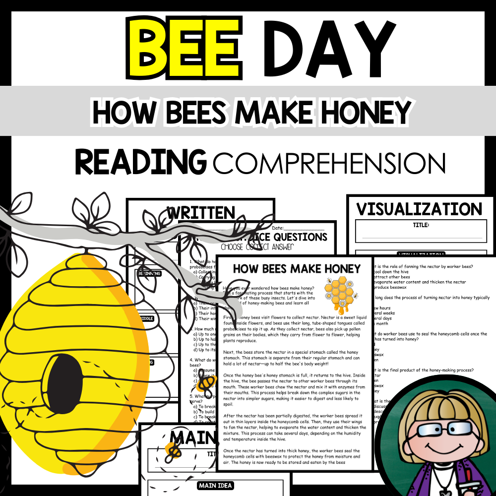 Grow your students knowledge with this Nonfiction Reading Comprehension Passage - Bee Day - How Bees Make Honey