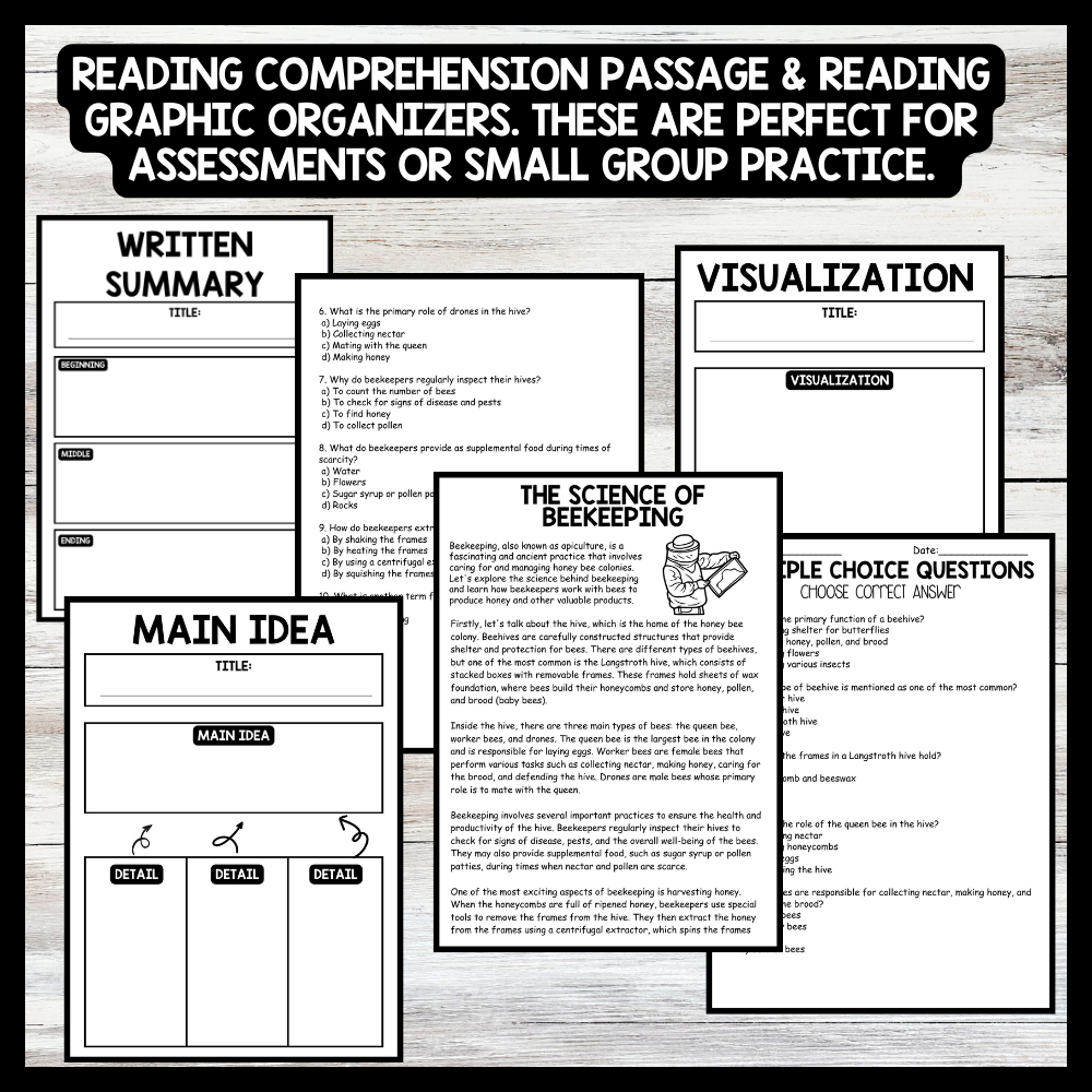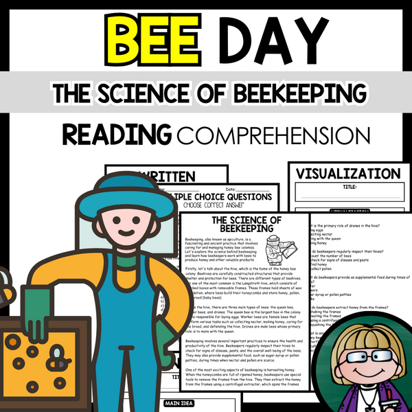 Grow your students knowledge with this Nonfiction Reading Comprehension Passage - Bee Day - The Science of Beekeeping These reading practice passages are perfect for: warm-up, bell work, homework, or weekly assessments. Students can use independently in literacy groups, guided...View more
