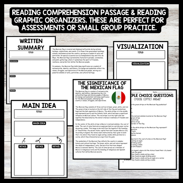 Different options provided- multiple choice, written response or graphic organizers to focus on individual skill.