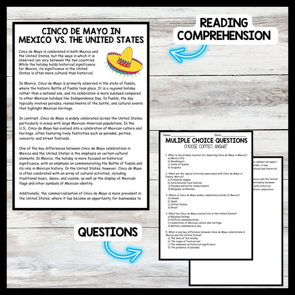 Cinco de Mayo -Mexico vs.the United States Reading comprehension Passage and Questions