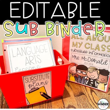 Editable Substitute Information Binder! Plus the things you need to create a SUB TUB! Customize this sub binder to fit your needs just ONCE and you can use it OVER and OVER again. Planning for a substitute can be hard work, but once you have these supplies ready to go, it will make life so much easier when planning for a substitute!