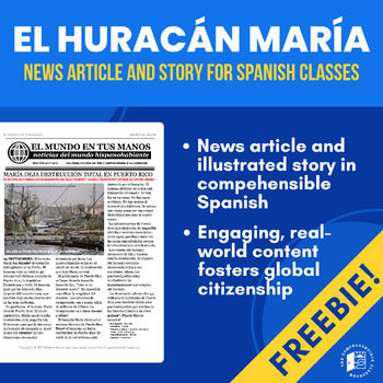 This product contains an article in Spanish with brief background information about Hurricane María, which hit land in Puerto Rico on the morning of September 20, 2017 as a Category 4 hurricane. It also contains a story, told in Spanish in an illustrated slideshow, loosely based on the real story of a Spanish teacher here in the US waiting to hear from her family in the days following the hurricane's landfall. Included with permission from the Spanish teacher, Enid López Reed, is a voicemail that she received from her mother on September 24, which was the first time that she heard anything from her family since the night before the storm. If you are unable to access the voicemail embedded in the PPT, you can open it directly from the .zip folder for this product.
