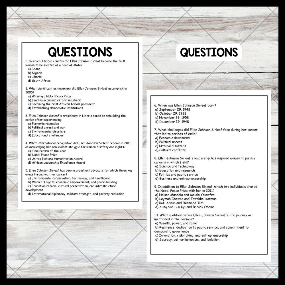 Ellen Johnson Sirleaf began her career in Liberia's public sector, rising through the ranks despite facing political unrest and periods of exile. In 2005, she made history as the first woman elected head of state in Africa, focusing on rebuilding her war-torn nation, promoting economic development, and strengthening democratic institutions. Her leadership earned her the Nobel Peace Prize in 2011, shared with Leymah Gbowee and Tawakkol Karman, for their work in women's rights and peace-building. Sirleaf's advocacy for women's rights and economic empowerment has inspired many to pursue political careers and contribute to positive change in their communities.