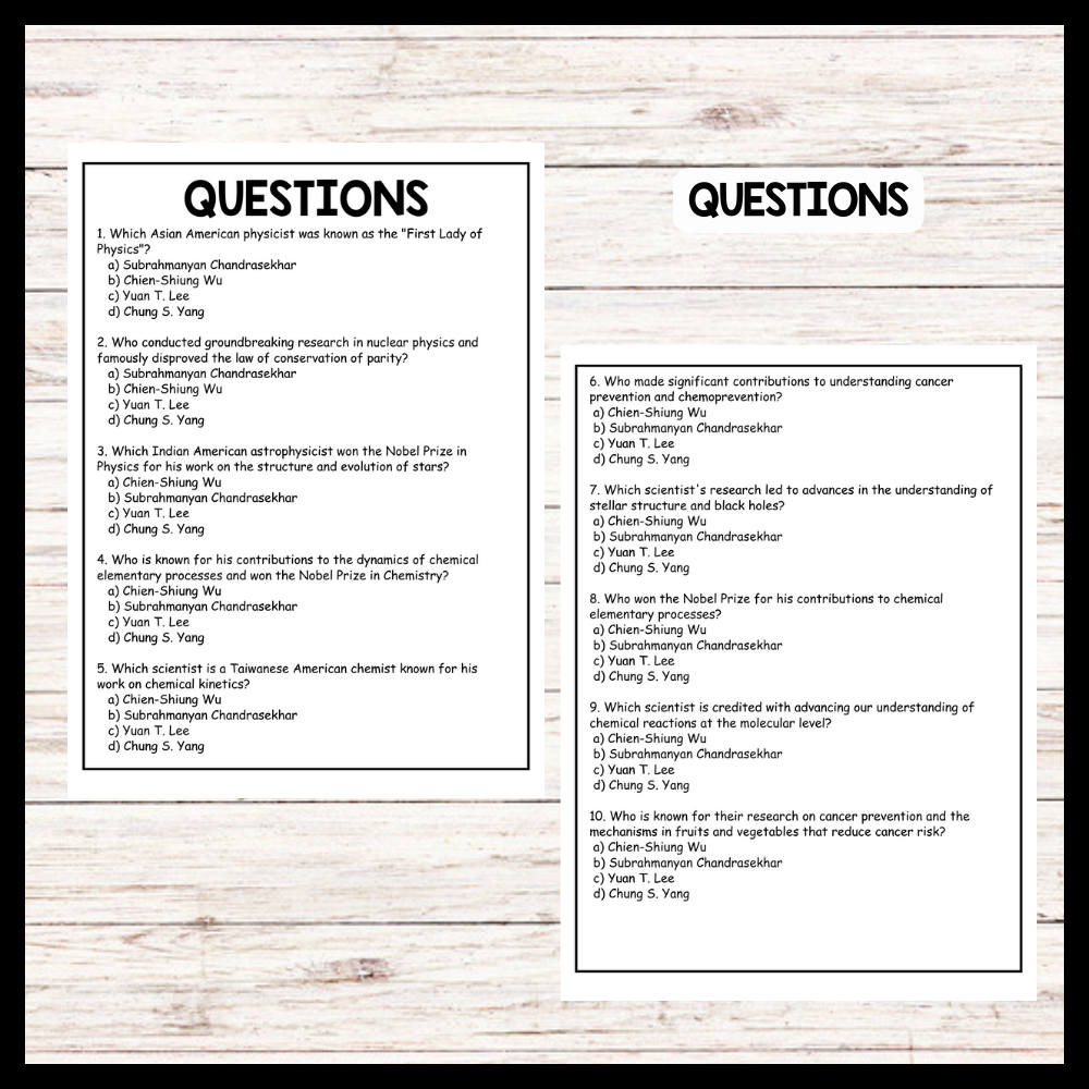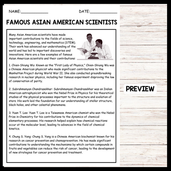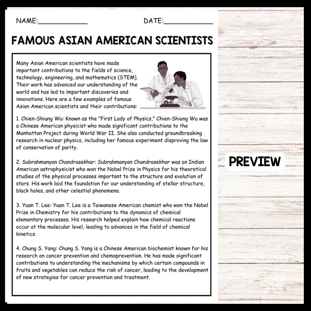 This passage highlights the achievements of notable Asian American scientists across various fields, including physics, astrophysics, chemistry, and biochemistry. It provides concise descriptions of their contributions, making it accessible for students to grasp. Teachers can use this passage to introduce diverse role models in science, inspiring students and fostering an appreciation for the significant impact of Asian American scientists on scientific progress.