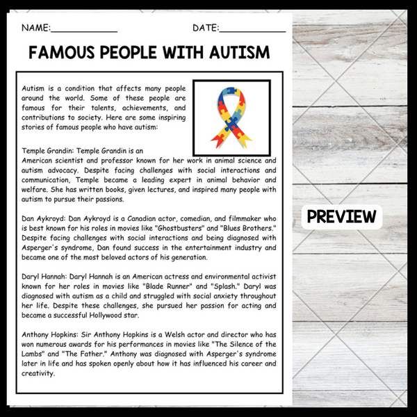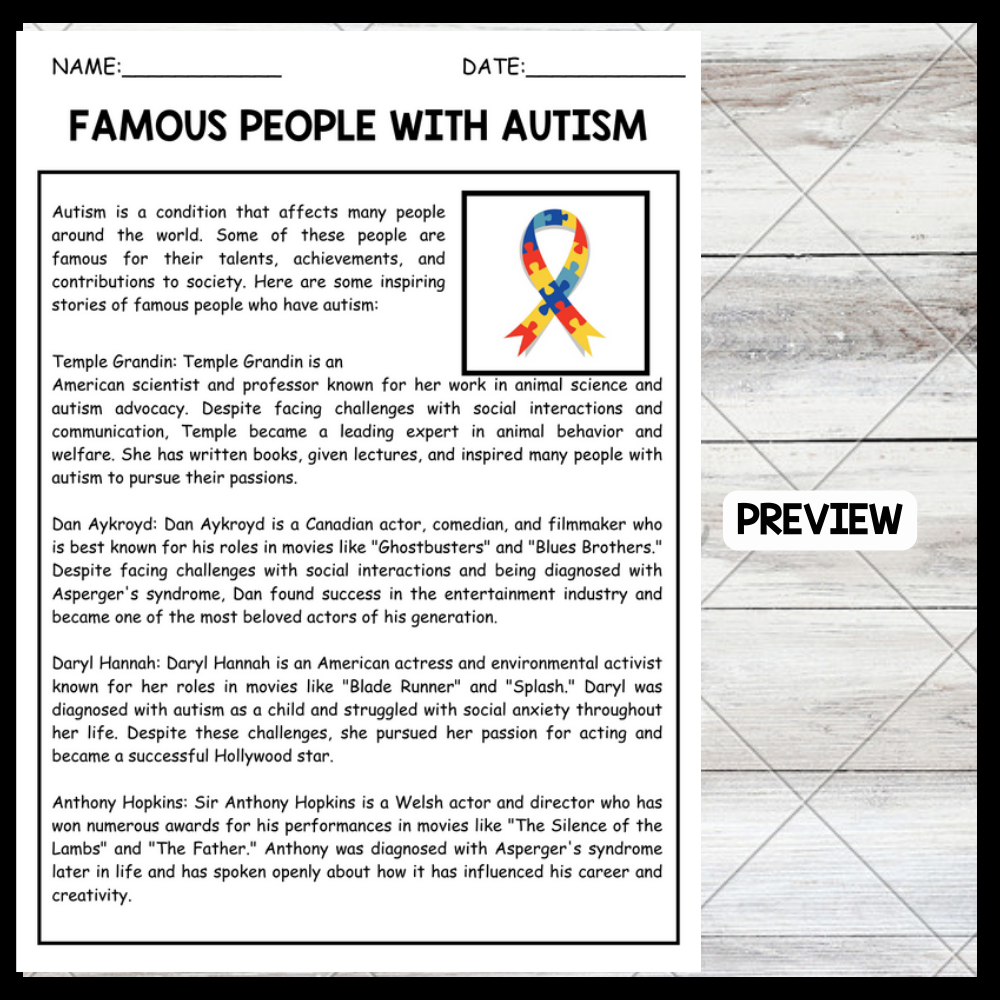 This passage provides concise biographies of notable individuals with autism, highlighting their achievements despite social challenges. It is helpful for teachers to use in class as it offers simple, inspiring examples that encourage students to appreciate diversity and perseverance.