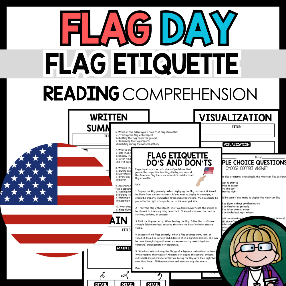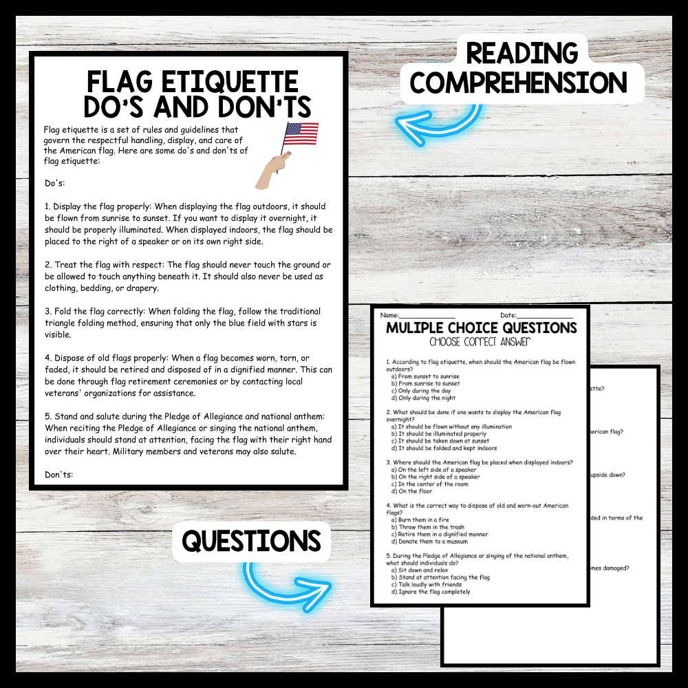 Flag Day - Flag Etiquette Reading comprehension Passage and Questions