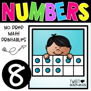 1. ‘Number 8’ Poster and ‘Number 8’ Counting Cards (3): For your number of the week classroom display, teachers can print out these color cards for student reference and number activities.