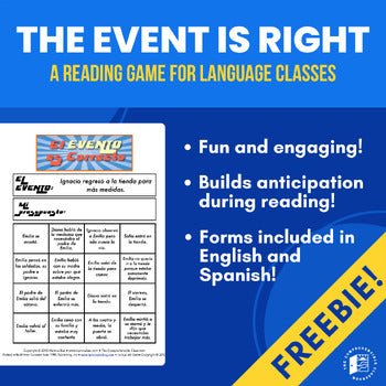 Use this game during reading to engage students. It works best with texts that contain a highly anticipated event that occurs at an unforeseen time. The file includes instructions, blank game boards in Spanish and English, and a sample game board for Chapter 7 of "La hija del Sastre" by Carrie Toth and Carol Gaab. The content from Chapter 7 is included with explicit written consent from the copyright holder.