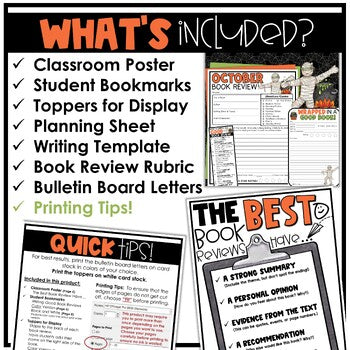 Enhance reading comprehension and writing skills with this engaging Halloween fall writing activity for October. This book review writing prompt template is perfect for bulletin boards, door decor, or hallway displays. Encourage your students to reflect on their favorite (or not-so-favorite) books while providing a valuable framework for their writing. Posting their book reports or reviews in the classroom will inspire your future readers to make informed decisions about their reading choices.