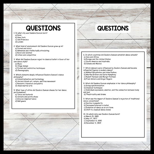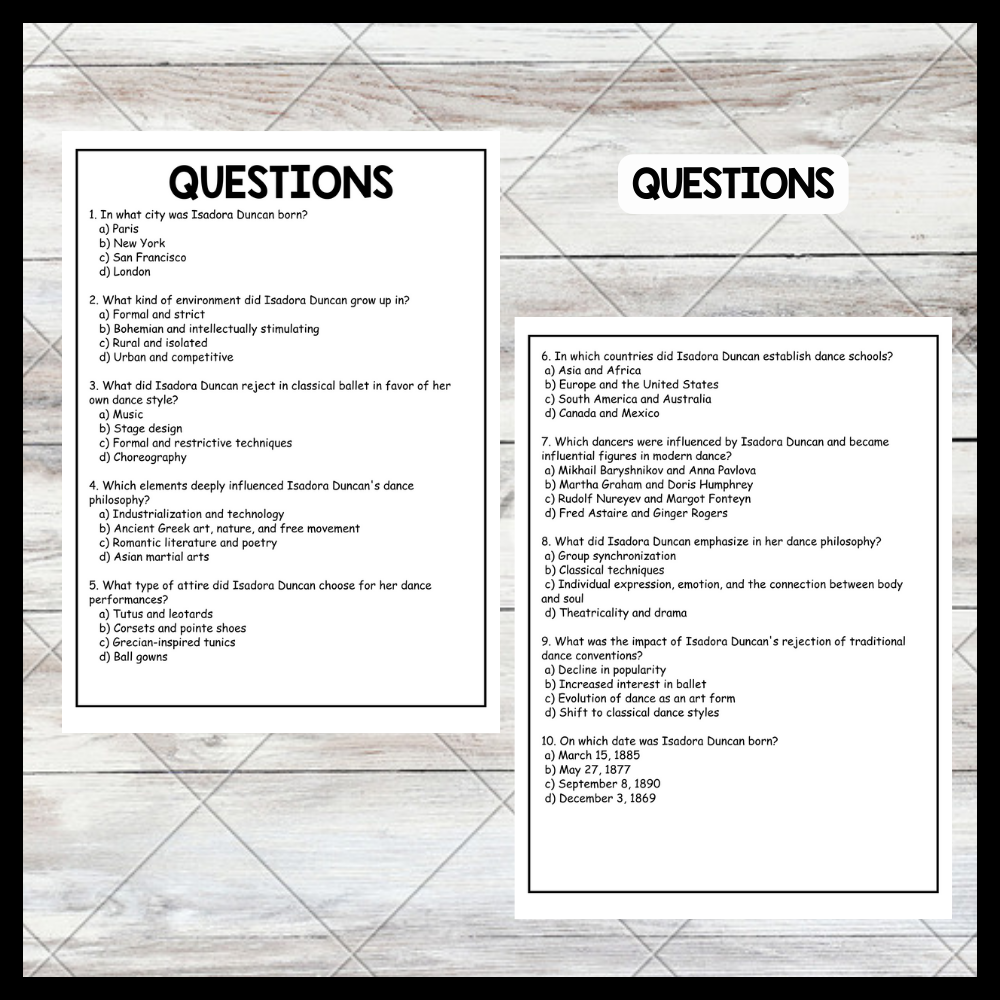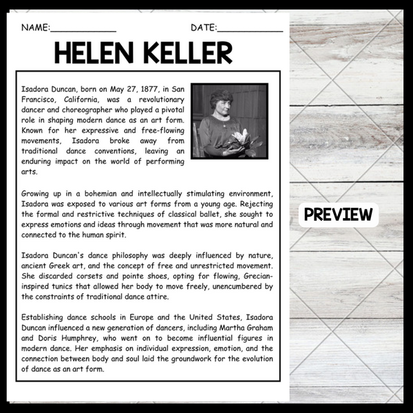 Growing up in a bohemian and intellectually stimulating environment, Isadora Duncan was exposed to various art forms from a young age. Rejecting the formal techniques of classical ballet, she sought to express emotions and ideas through more natural and connected movements. Influenced by nature, ancient Greek art, and the concept of free movement, Duncan discarded corsets and pointe shoes in favor of flowing, Grecian-inspired tunics. She established dance schools in Europe and the U.S., influencing a new generation of dancers like Martha Graham and Doris Humphrey. Her emphasis on individual expression and the connection between body and soul laid the groundwork for modern dance.
