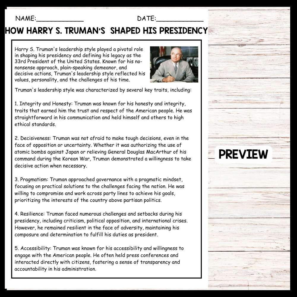 Truman's leadership style embodied integrity, honesty, and decisiveness, earning him the trust and respect of the American people. He approached governance with pragmatism, focusing on practical solutions and demonstrating resilience in the face of challenges. Truman's accessibility and willingness to engage with citizens fostered transparency and accountability in his administration, solidifying his legacy as a respected leader.