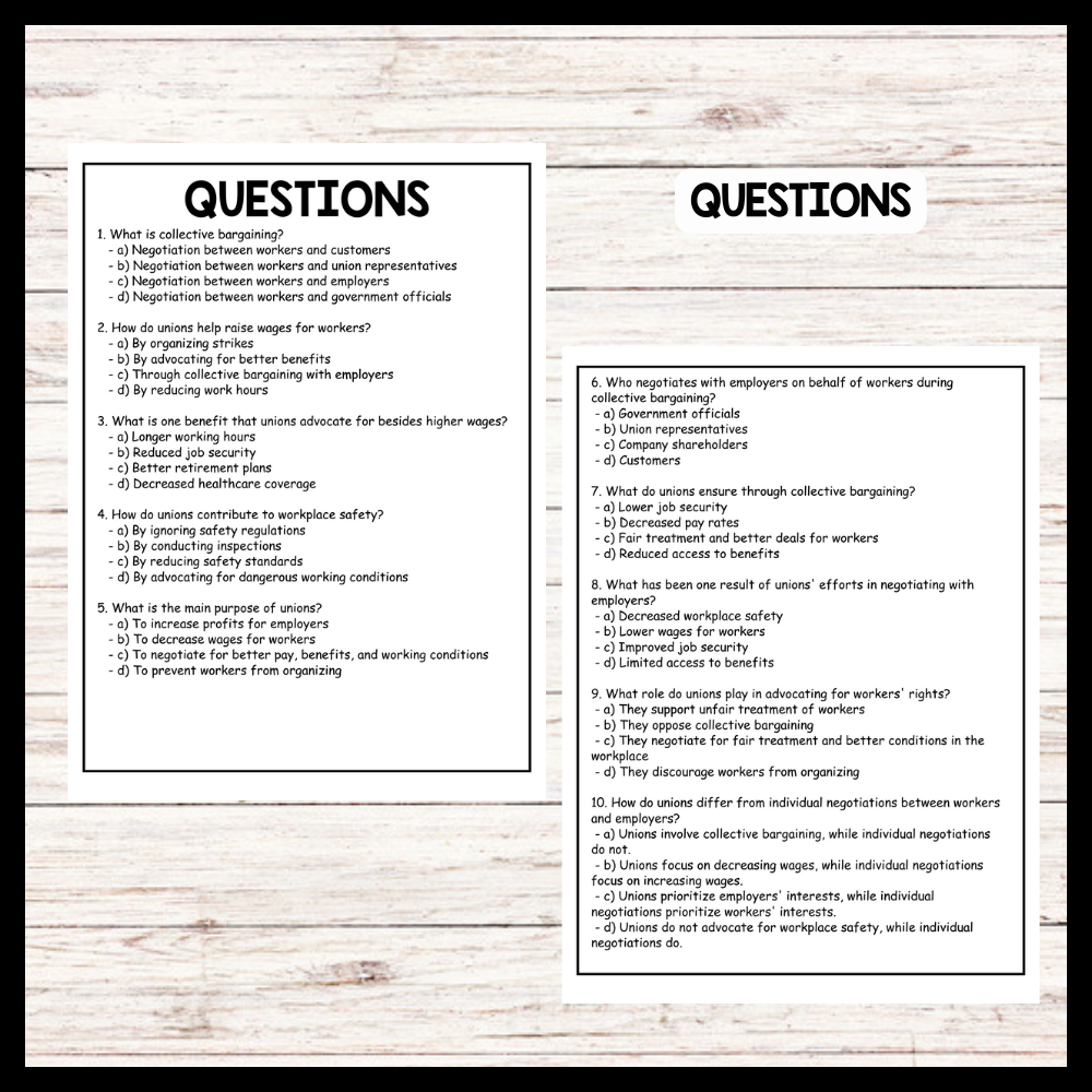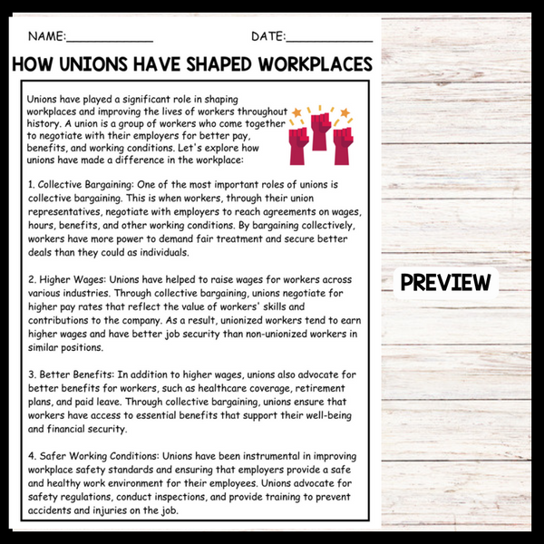 This passage explains the key roles and benefits of labor unions, highlighting their efforts in collective bargaining, securing higher wages, advocating for better benefits, and ensuring safer working conditions for workers. It is useful for teachers as it is simple and easy to understand, making it an effective resource for introducing students to the concept and importance of labor unions in improving workers' rights and conditions.