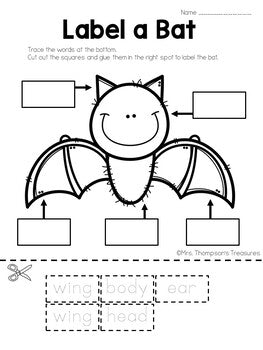They will trace the words, cut them out, then glue onto the picture in the correct spot. Great for a science unit on bats, fall, or Halloween!