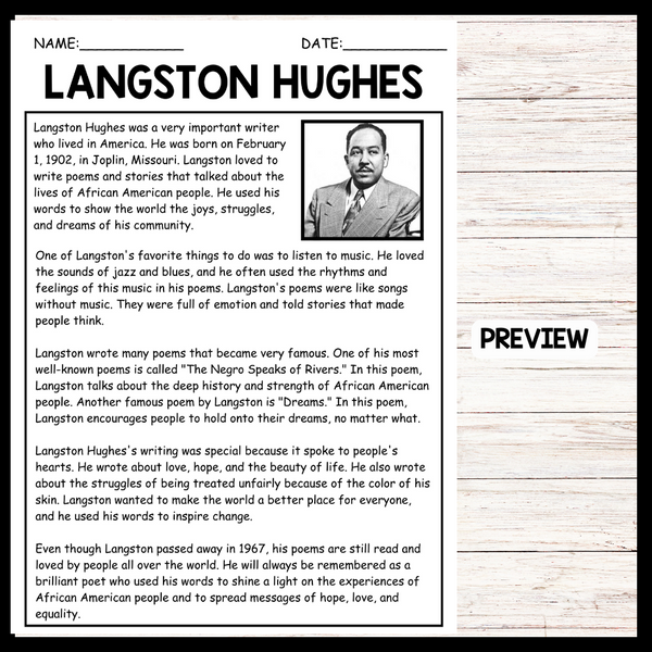 This passage provides an overview of Langston Hughes's influential poetry, inspired by jazz and blues, which explores the resilience of African American people and the human experience. It's useful for teachers because it highlights Hughes's enduring impact and themes of hope and equality, making his work accessible and meaningful for students to study and appreciate.