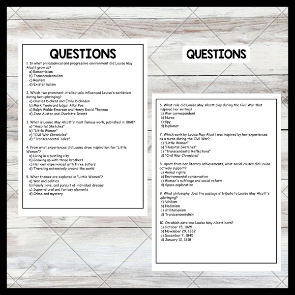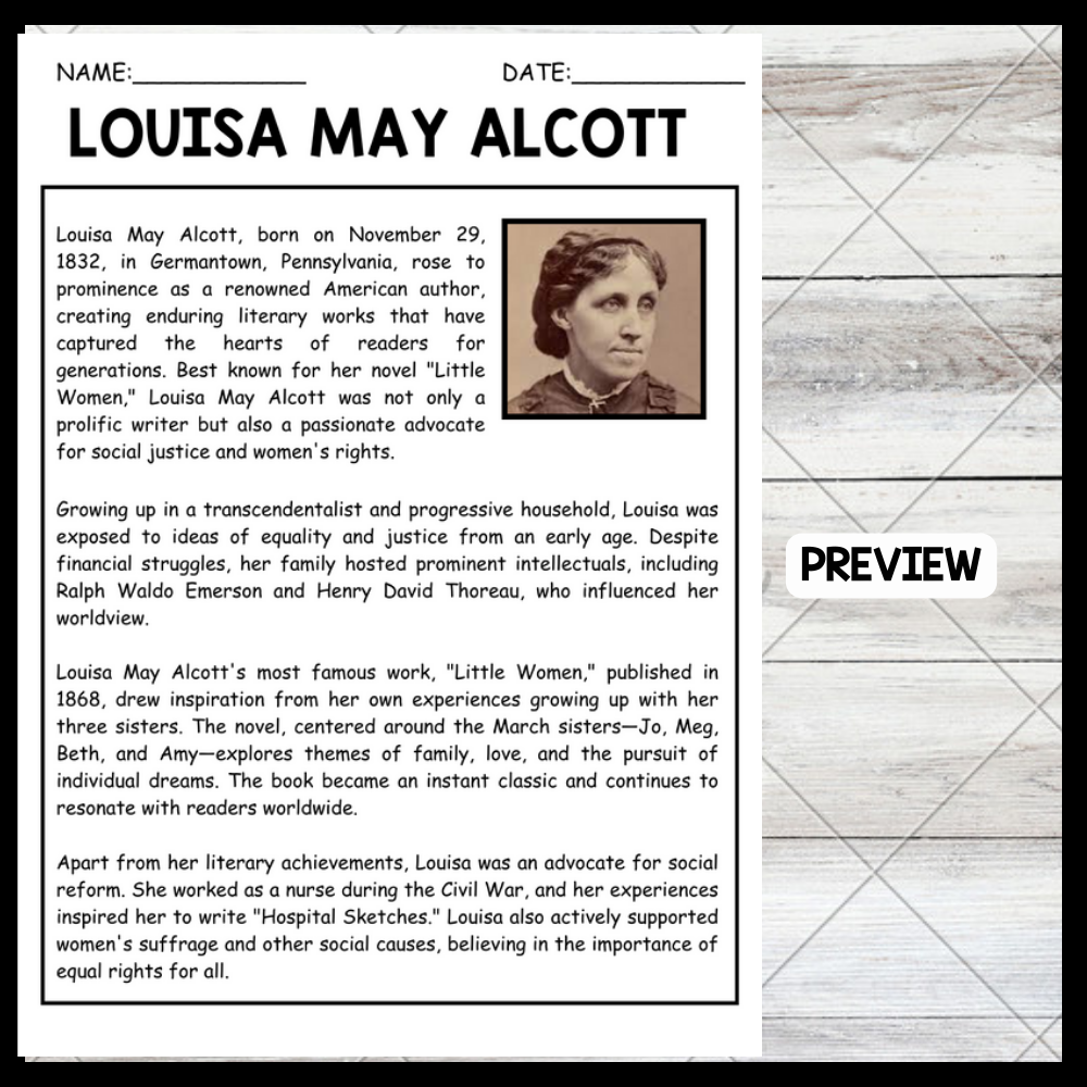 This passage provides an overview of Louisa May Alcott's life and contributions, highlighting her transcendentalist upbringing, her classic novel "Little Women," and her advocacy for social reform. It is helpful for teachers because it succinctly covers key aspects of her life and achievements, making it easy for students to grasp her influence in literature and social justice.