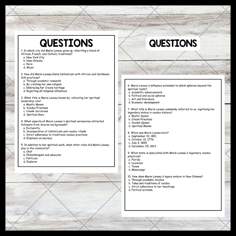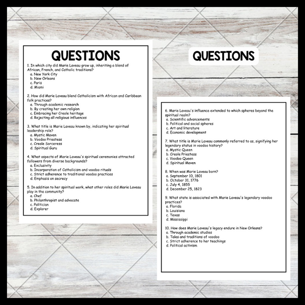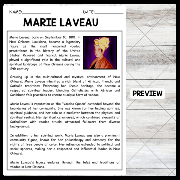 Marie Laveau, the "Voodoo Queen" of New Orleans, blended Catholicism with African and Caribbean folk practices to create a unique form of voodoo. Known for her healing abilities and spiritual guidance, she attracted followers from diverse backgrounds. Beyond her spiritual role, Laveau was a prominent community figure, advocating for the rights of free people of color and leaving a lasting legacy in the traditions of voodoo in New Orleans.