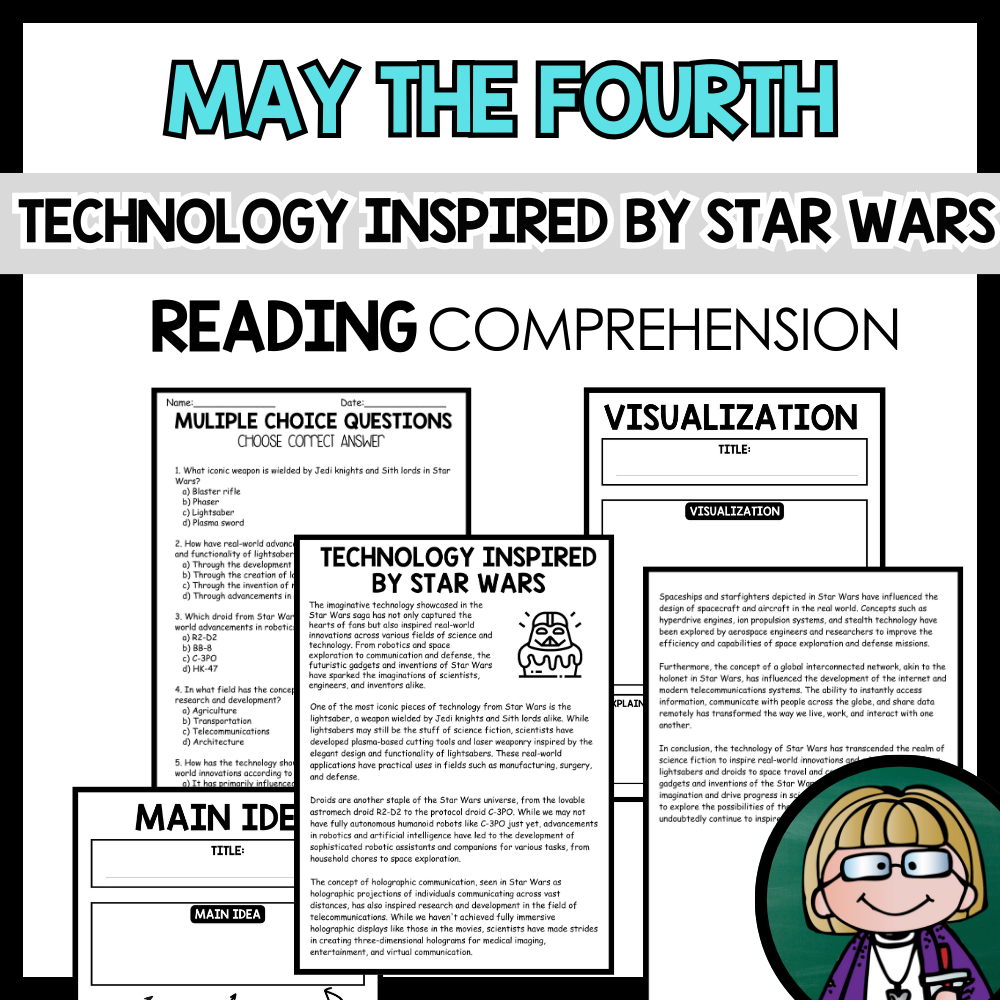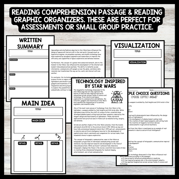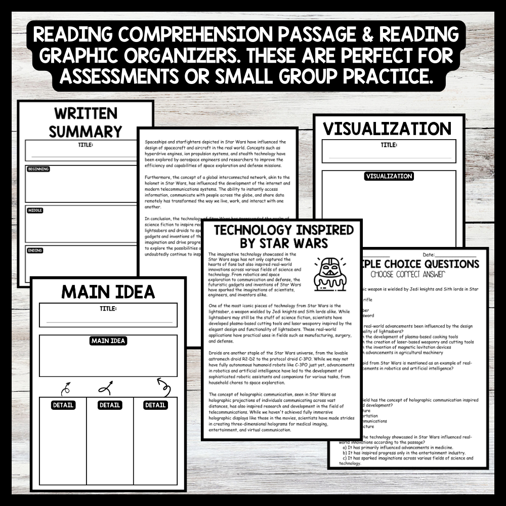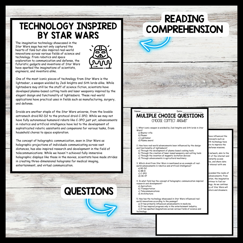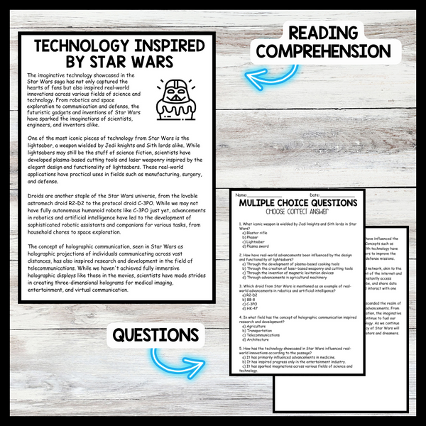 Grow your students knowledge with this Nonfiction Reading Comprehension Passage -  Technology Inspired by Star Wars These reading practice passages are perfect for: warm-up, bell work, homework, or weekly assessments. Students can use independently in literacy groups, guided reading groups....View more
