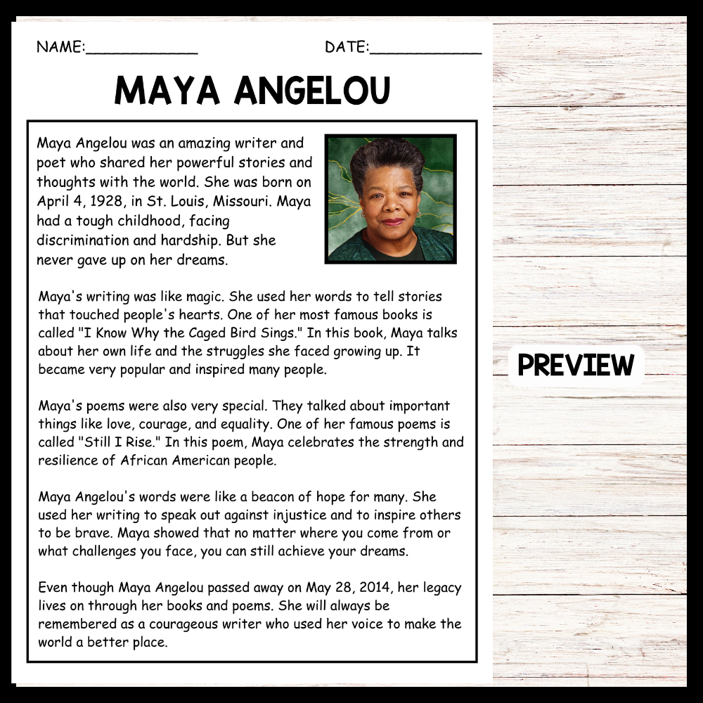 This passage highlights Maya Angelou's impactful storytelling and poetry, emphasizing her ability to inspire and empower through her work. It's helpful for teachers as it underscores Angelou's themes of love, courage, and equality, making her writing accessible and relevant for students to study and appreciate.