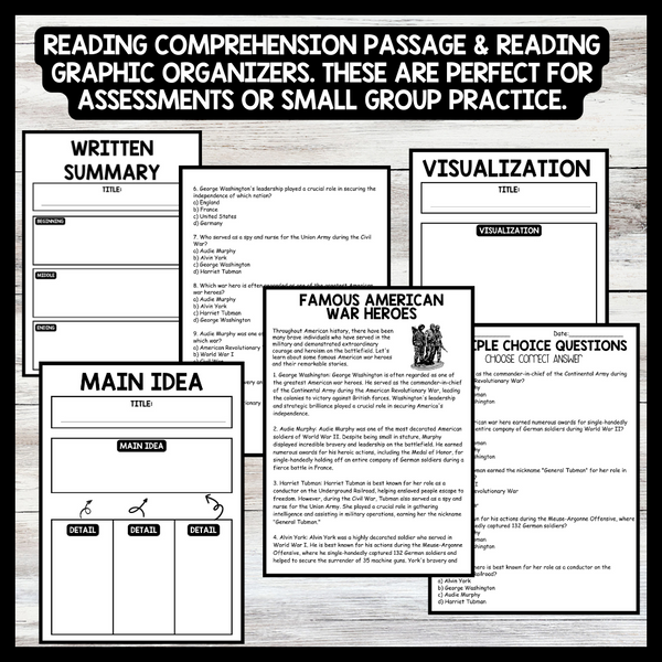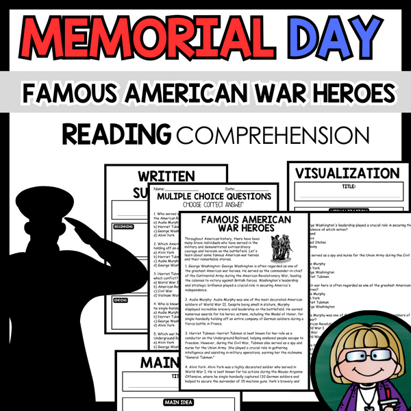 Grow your students knowledge with this Nonfiction Reading Comprehension Passage - Memorial Day - Famous American War Heroes These reading practice passages are perfect for: warm-up, bell work, homework, or weekly assessments. Students can use independently in literacy groups, guided...View more