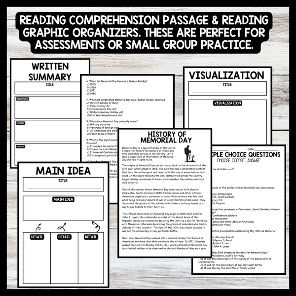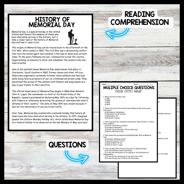 Grow your students knowledge with this Nonfiction Reading Comprehension Passage - Memorial Day - History of Memorial Day