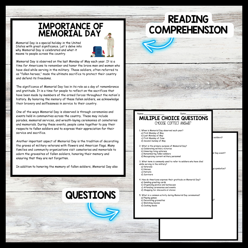 Memorial Day - Importance of Memorial Day Reading comprehension Passage and Questions