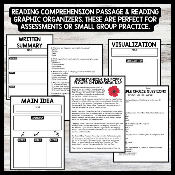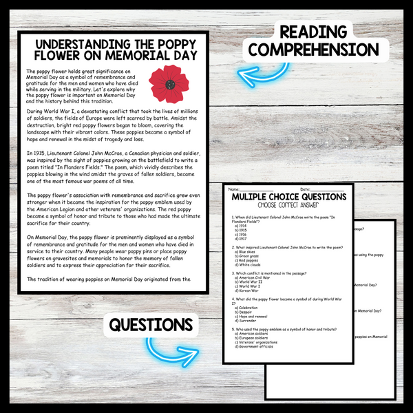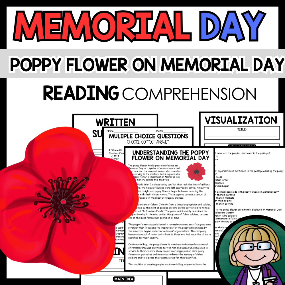 Grow your students knowledge with this Nonfiction Reading Comprehension Passage - Memorial Day - Poppy Flower on Memorial Day
