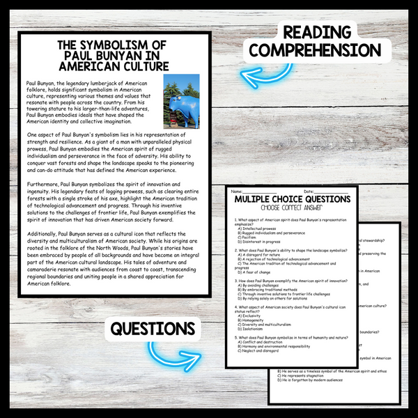 Grow your students knowledge with this Nonfiction Reading Comprehension Passage - Paul Bunyan Day - The Symbolism