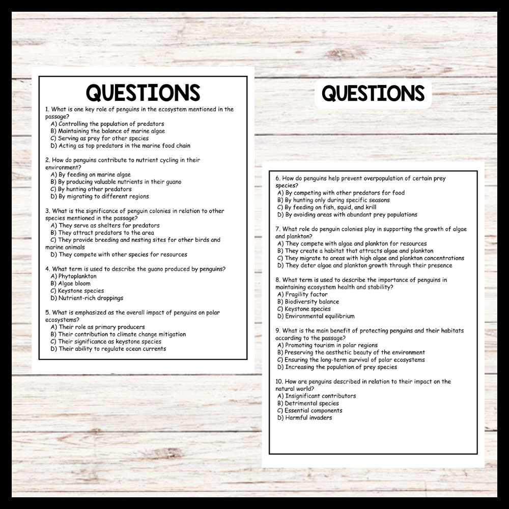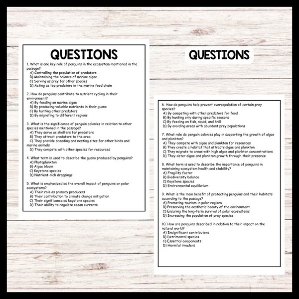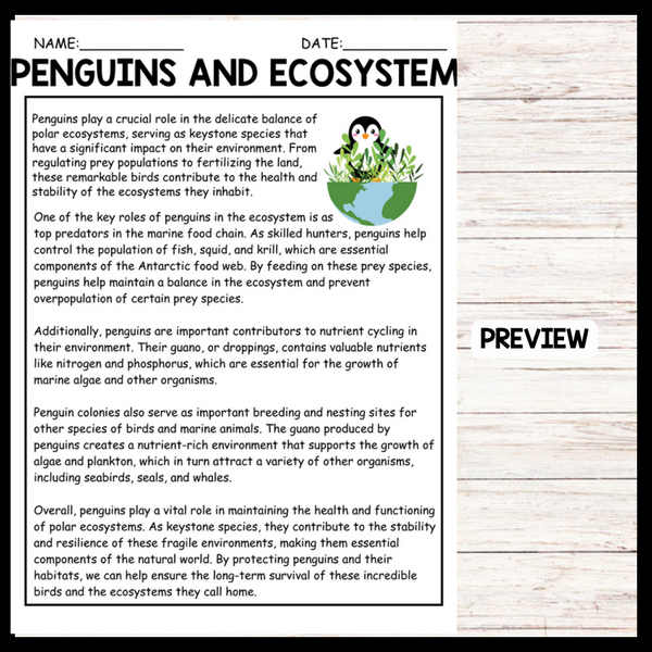 This passage explains the important role penguins play in their ecosystem as top predators and contributors to nutrient cycling. By controlling the populations of their prey and enriching their environment with nutrients, penguins help maintain ecological balance. This overview is helpful for teachers as it clearly outlines penguins' ecological significance, making it accessible and informative for students.