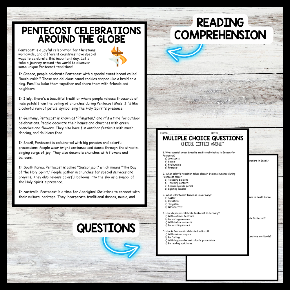Pentecost - Celebrations Around the Globe Reading comprehension Passage and Questions
