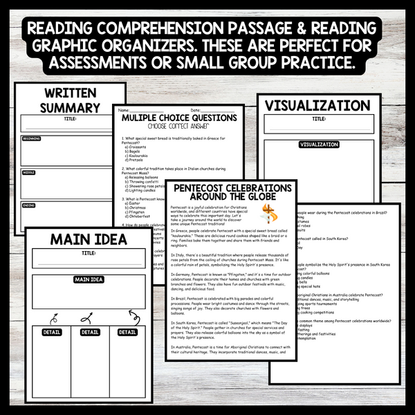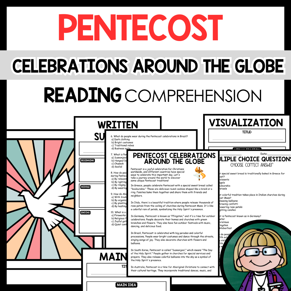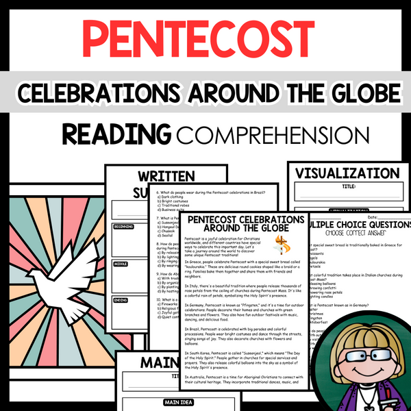 Grow your students knowledge with this Nonfiction Reading Comprehension Passage - Pentecost - Celebrations Around the Globe These reading practice passages are perfect for: warm-up, bell work, homework, or weekly assessments. Students can use independently in literacy groups, guided reading...View more