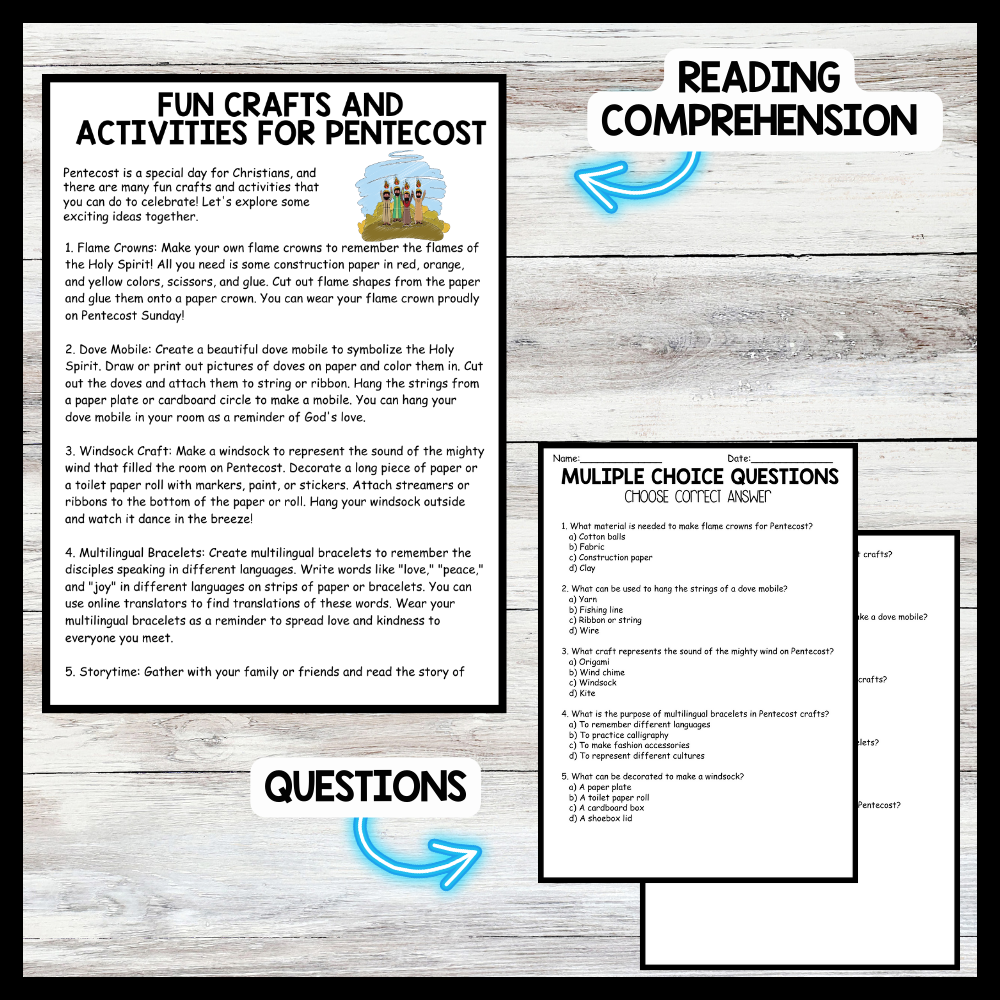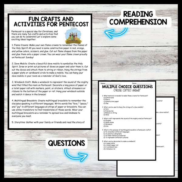Pentecost - Fun Crafts and Activities Reading comprehension Passage and Questions