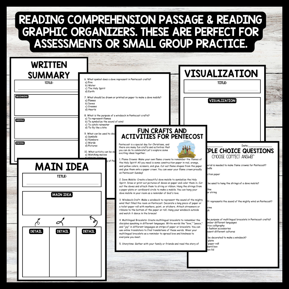 Grow your students knowledge with this Nonfiction Reading Comprehension Passage - Pentecost - Fun Crafts and Activities These reading practice passages are perfect for: warm-up, bell work, homework, or weekly assessments. Students can use independently in literacy groups, guided reading...View more
