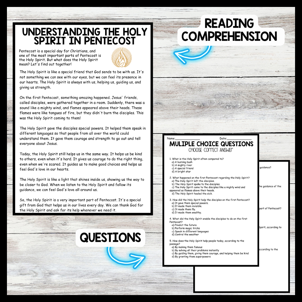 Pentecost - the Holy Spirit in Pentecost Reading comprehension Passage and Questions