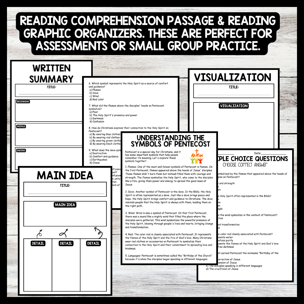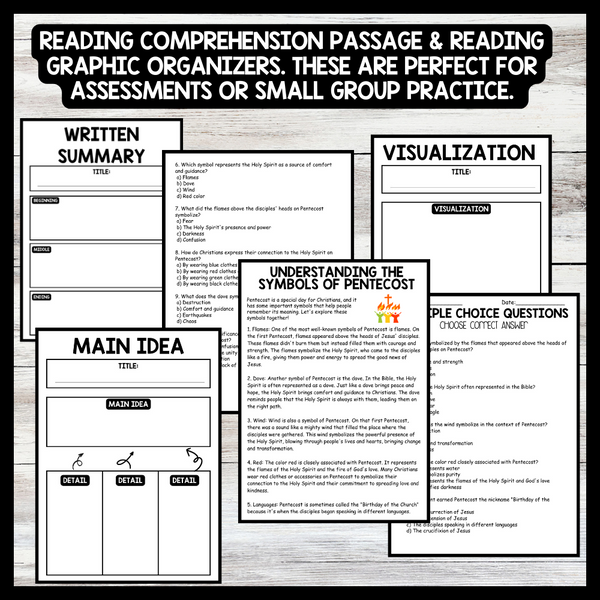 Grow your students knowledge with this Nonfiction Reading Comprehension Passage - Pentecost - Understanding the Symbols These reading practice passages are perfect for: warm-up, bell work, homework, or weekly assessments. Students can use independently in literacy groups, guided reading groups....View more