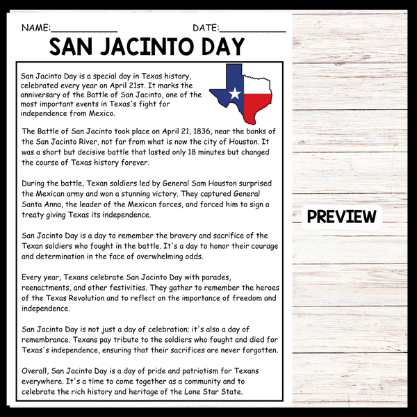 The passage beautifully captures the essence of San Jacinto Day celebrations in Texas, highlighting both the solemn remembrance of the sacrifices made during the Texas Revolution and the joyous celebration of Texas's unique heritage and culture. Teachers can use this passage to explore the significance of San Jacinto Day with students, discussing the historical events surrounding the Texas Revolution and its lasting impact on Texas's identity. Additionally, students can learn about the various festivities and traditions that take place on San Jacinto Day, fostering a deeper appreciation for Texas's rich history and the values of freedom and independence it represents.