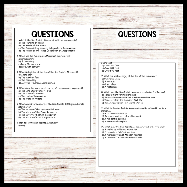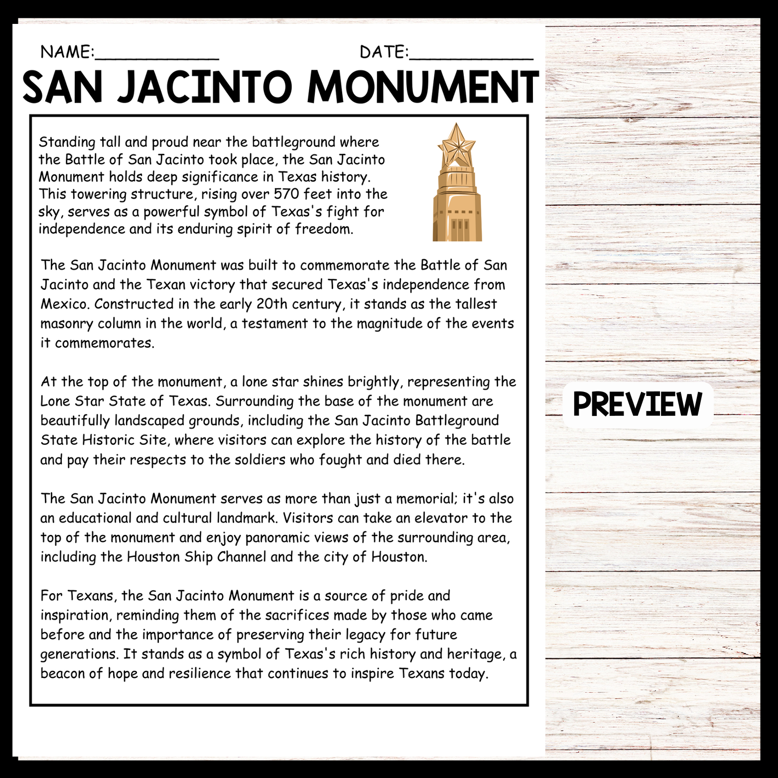 "SAN JACINTO MONUMENT" SAN JACINTO DAY Reading Comprehension