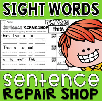 This FREEBIE contains 6 pages of the activity we call "Sight Words Sentence Repair Shop". This fun activity has your students practicing their sentence writing skills by rearranging a scrambled sentence. A QR code is included for every sentence that has the correct answer for those teachers that would like to have their students self correct!