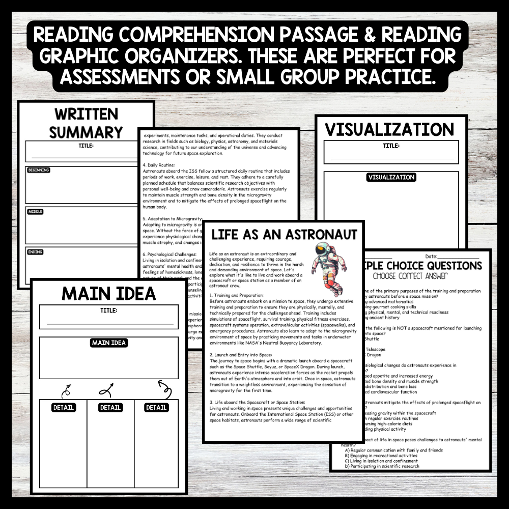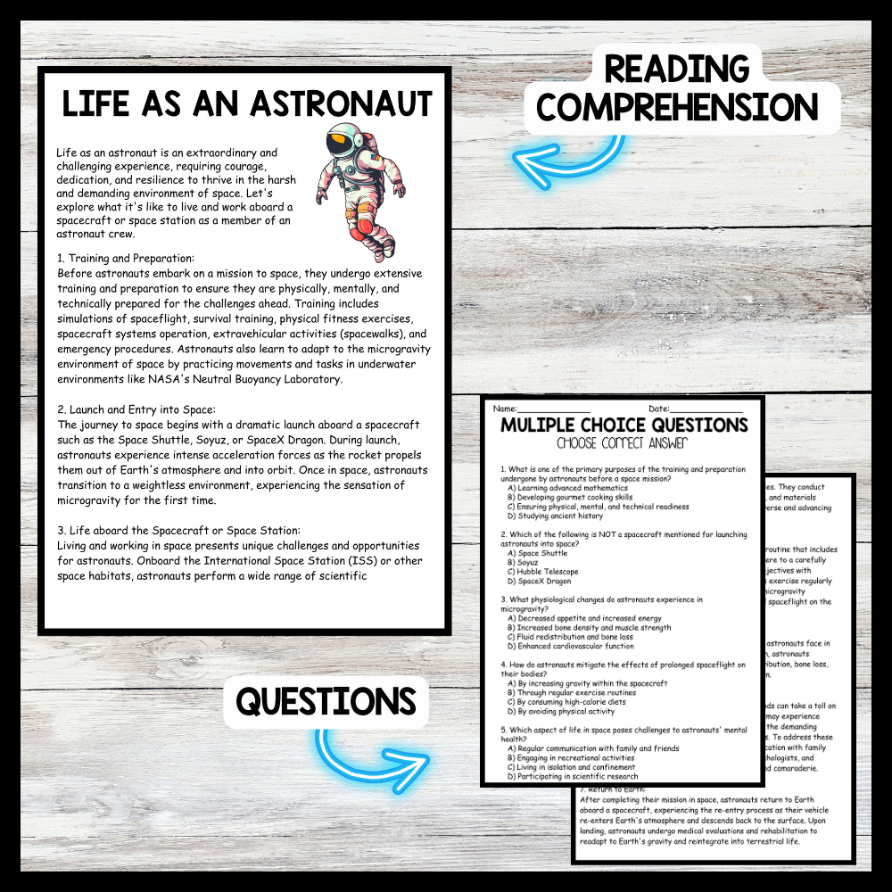 Grow your students knowledge with this Nonfiction Reading Comprehension Passage - Space Day - Astronaut’s Life These reading practice passages are perfect for: warm-up, bell work, homework, or weekly assessments. Students can use independently in literacy groups, guided reading groups....View more